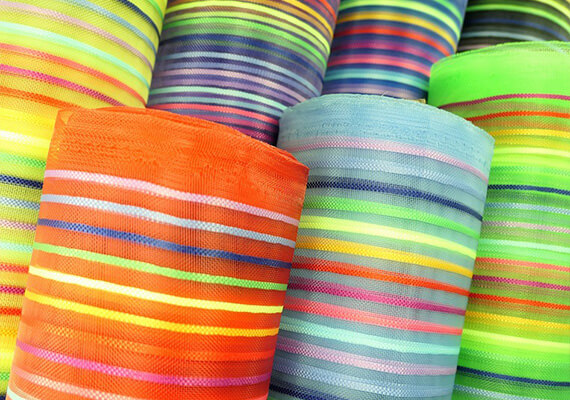產品簡介:這款網布是七彩條紋網眼,是今年非常流行的一種新型網眼面料,條紋顏色非常搶眼。 主要用于手提袋、購物袋、化妝品袋、收納袋、沙灘包、戶外手提洗漱包、、鞋類等。優點是色彩鮮艷、不褪色、抗老化、強度高、回彈快、透氣、防水、耐油。 我們研發生產了多種條紋網,生產技術成熟。