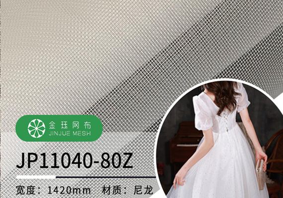 JP11001白色尼龍婚紗禮服類絲網(wǎng)布是我們的基本款,也是熱銷及應(yīng)用廣泛的一種尼龍網(wǎng)眼布, 該商品目數(shù)為10絲80目,顏色主要有本白色、膚色、金色、銀色等,顏色、目數(shù)、克重門幅都可以來圖來樣定制。主要用于制作婚紗禮服、西服等里襯高級面料,繡花高級底料。