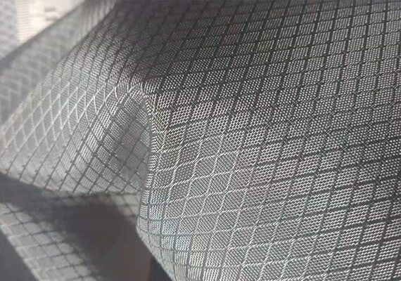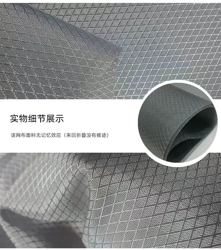 這種織物采用兩種編織技術(shù),提花和條帶編織。它是指使用單根復(fù)絲進(jìn)行織造和提花織造。這種尼龍面料的形狀是由復(fù)絲編織的方格和單絲提花技術(shù)編織的小四角組成的復(fù)合面料。
